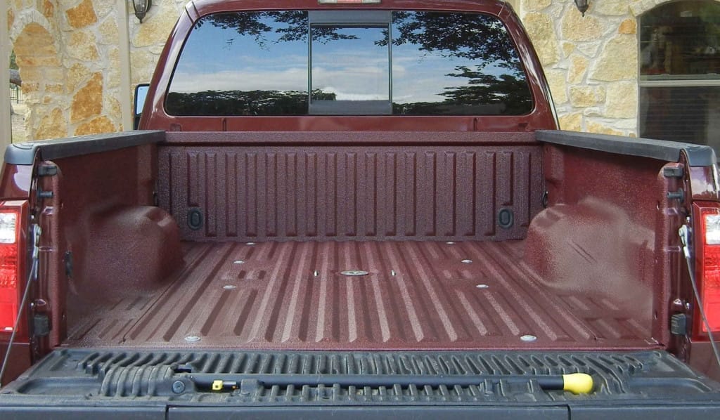 Truck coated with burgundy bed liner material