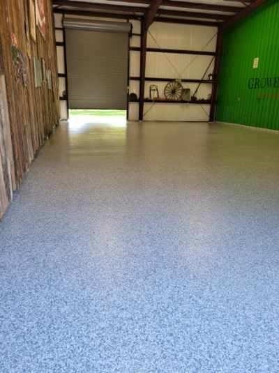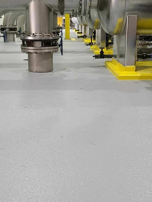 Commercial warehouse floor coated with Primetech 21, full broadcast vinyl chips and Protech 7072 topcoat