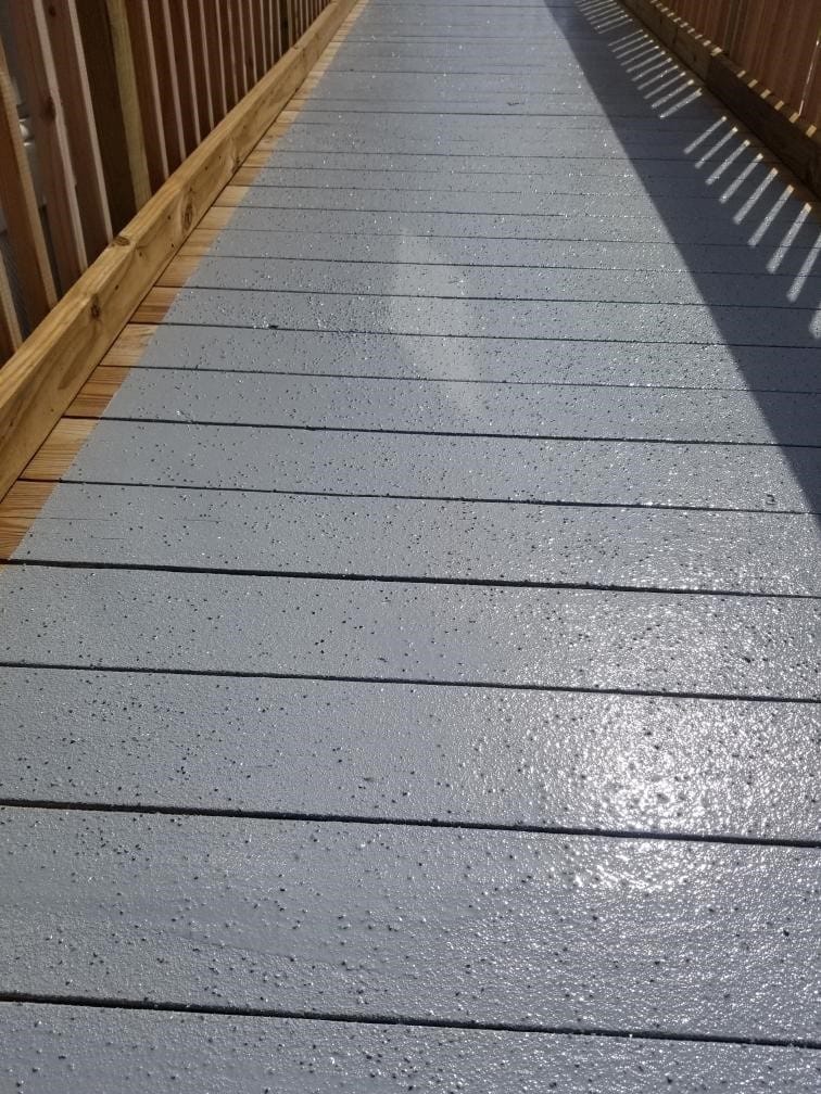 Wooden walkway coated with Primetech 2180, Protech 7072 and nonskid aggregate