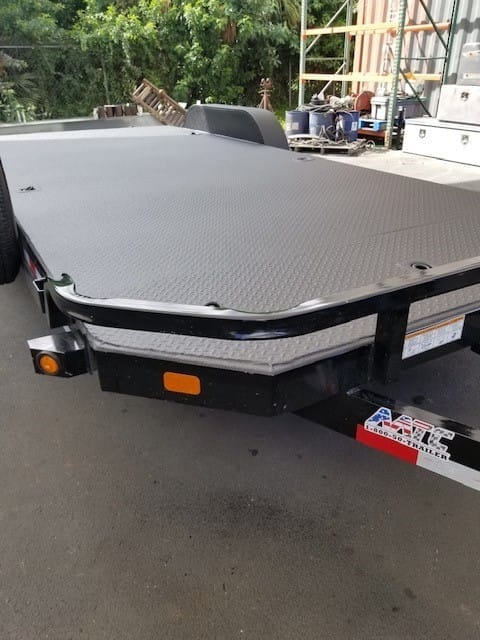 Custom autohauler platform coated with Evotech 1000 spray-in bedliner