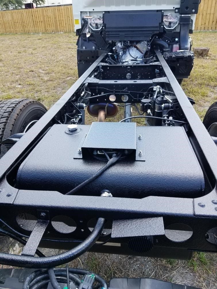 Vehicle chassis coated with Evotech 1000 spray-in bedliner