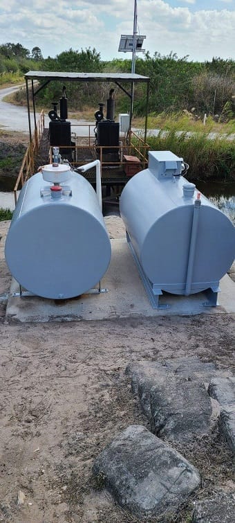 After photo of outdoor storage tanks coated with Primetech 2180, Evotech 1000 spray-in bedliner and Protech 7072SC topcoat