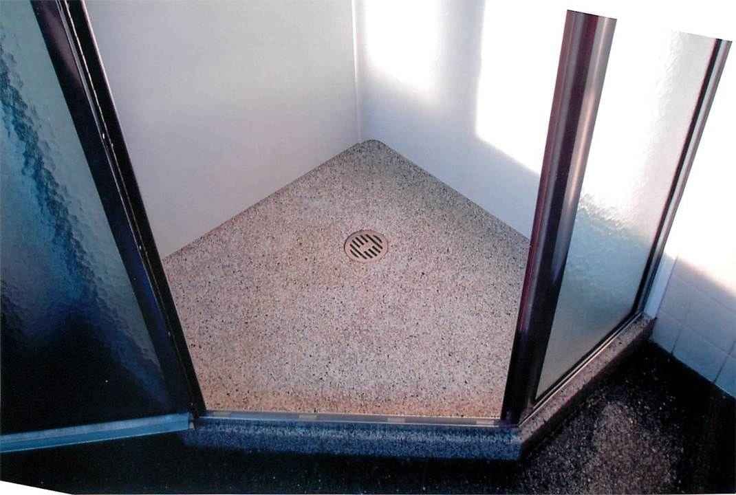 Shower pan coated with a slip resistant industrial coating